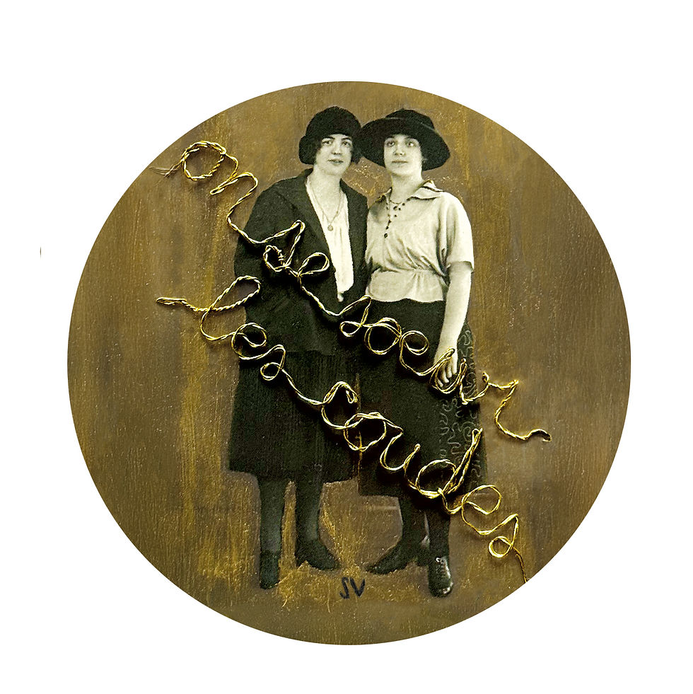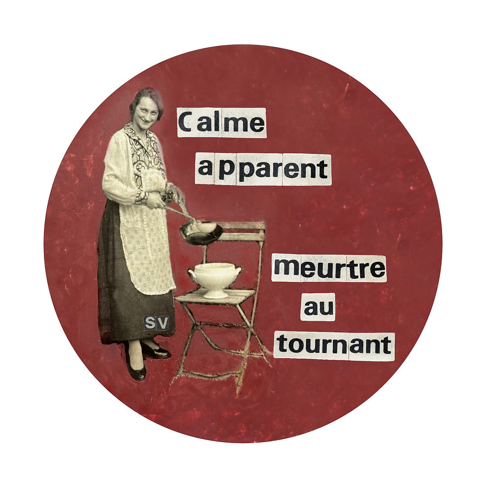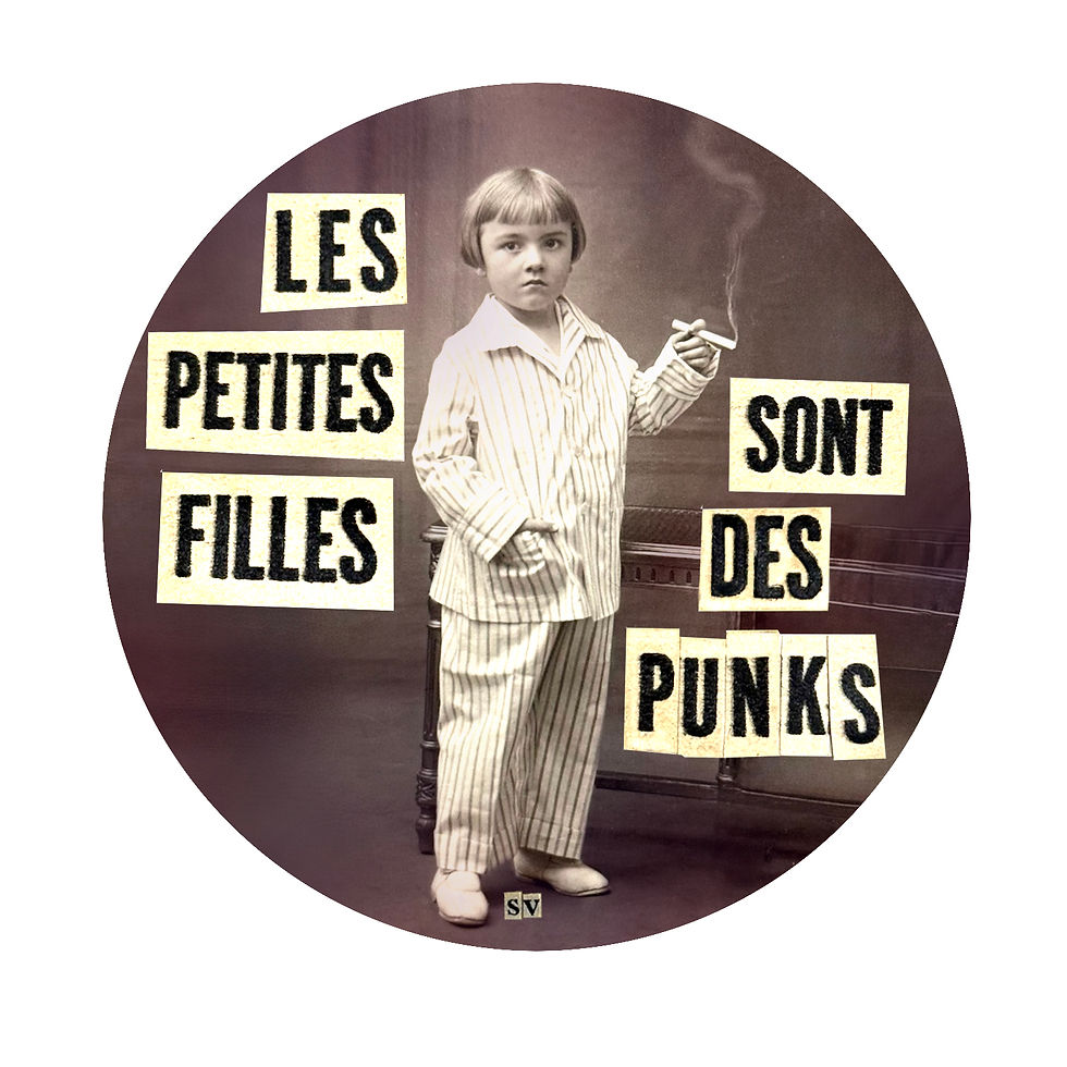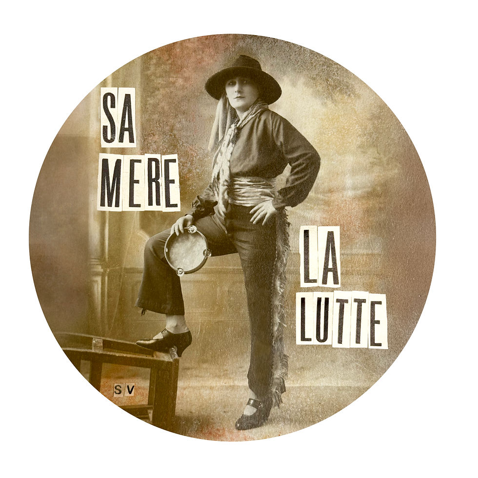 Tous mes collages sont faits à la main, sur des photos tirages originaux d'époque chinés, avec des lettres découpées minutieusement à la main. J'utilise en revanche photoshop pour retoucher ces collages pour tout ce qui est imprimé (cartes postales, magnets, badges...), pour parfois recadrer un collage, en ajuster les couleurs, mais aussi quelques fois effacer des choses (tâches, trou... ) qui donnent leur charme à une oeuvre originale, mais sont trop distrayantes sur un badge par exemple.