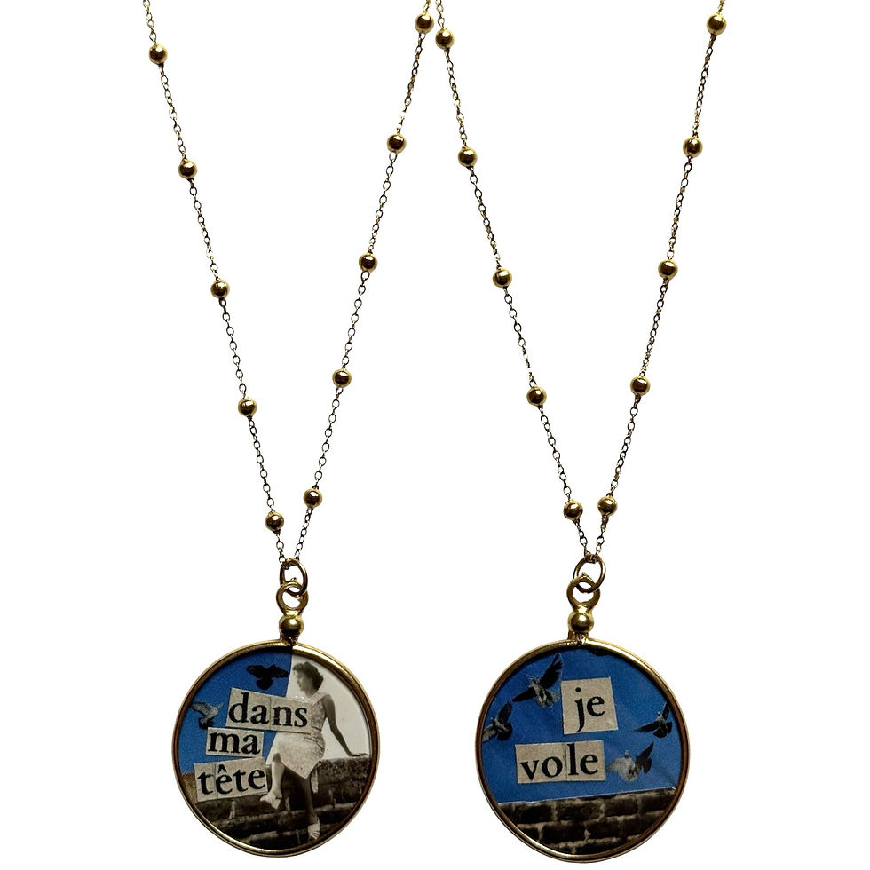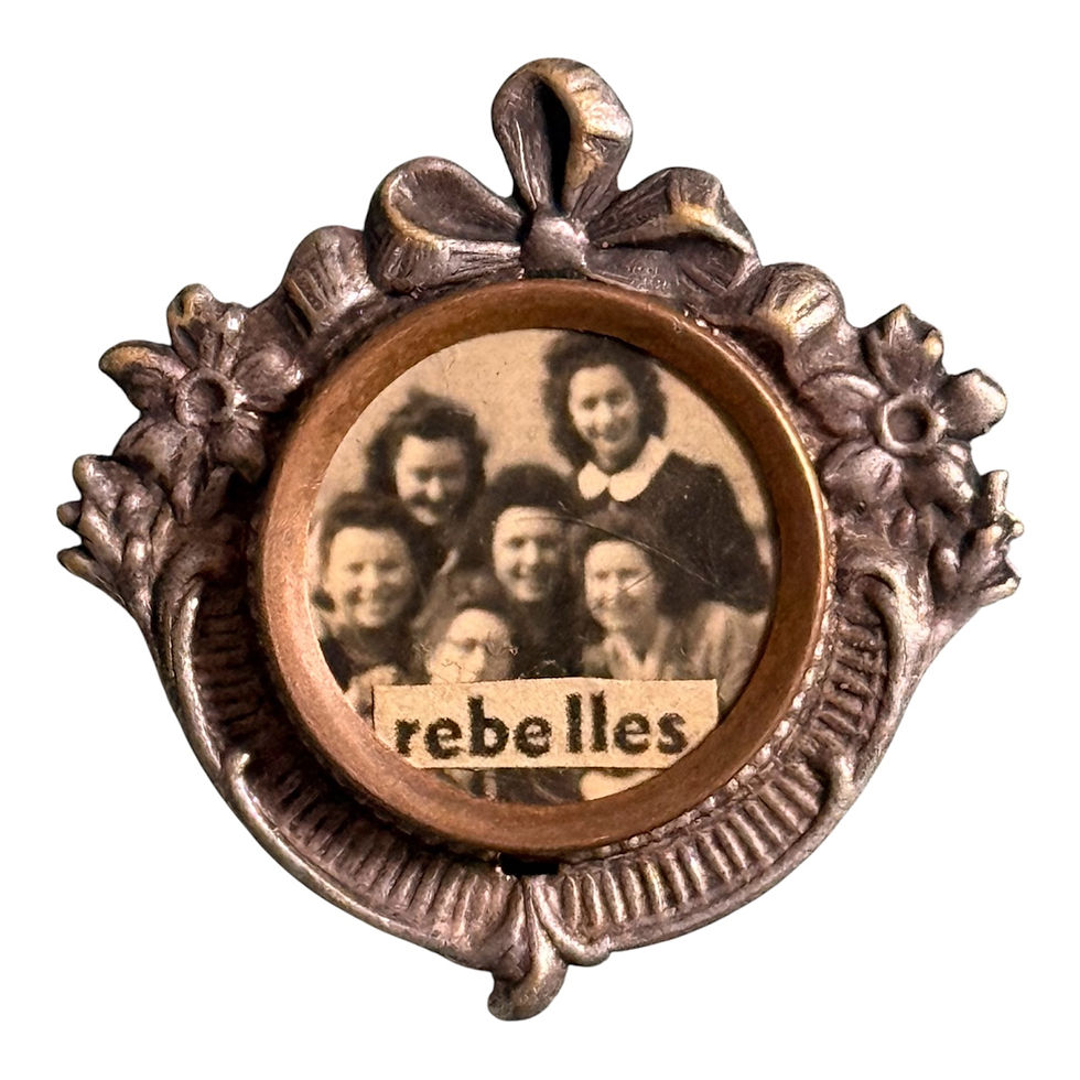 Contrairement aux badges imprimés à partir de photos de mes collages, ici les bijoux sont à chaque fois des pièces uniques. Les supports (broches porte-photos, pendentifs porte photos etc) ont été chinés chez des antiquaires, parfois en lots que les collectionneurs avaient acheté de stocks de vieilles bijouterie. Ici, pas de créations faites à partir de pièces achetées chez Tému. Les chaines sont soit chinées, soit achetées en droguerie où j'achète aussi les fermoirs de colliers et de boucles d'oreilles. Chaque pièce est unique, mais je peux en créer une "dans le même esprit" sur commande.