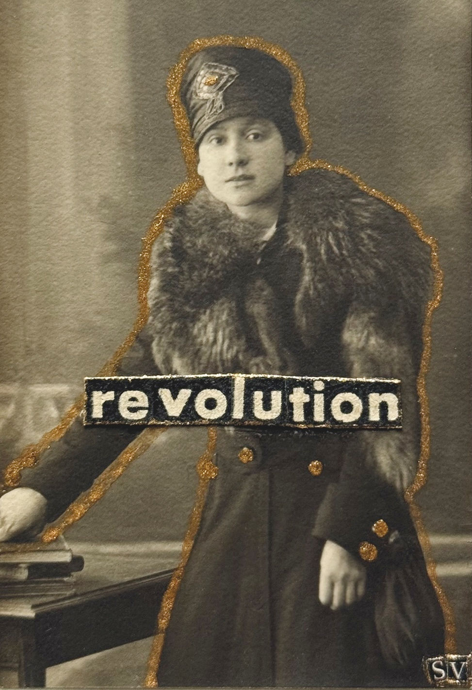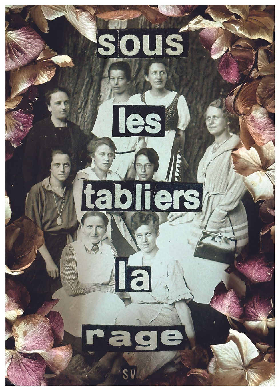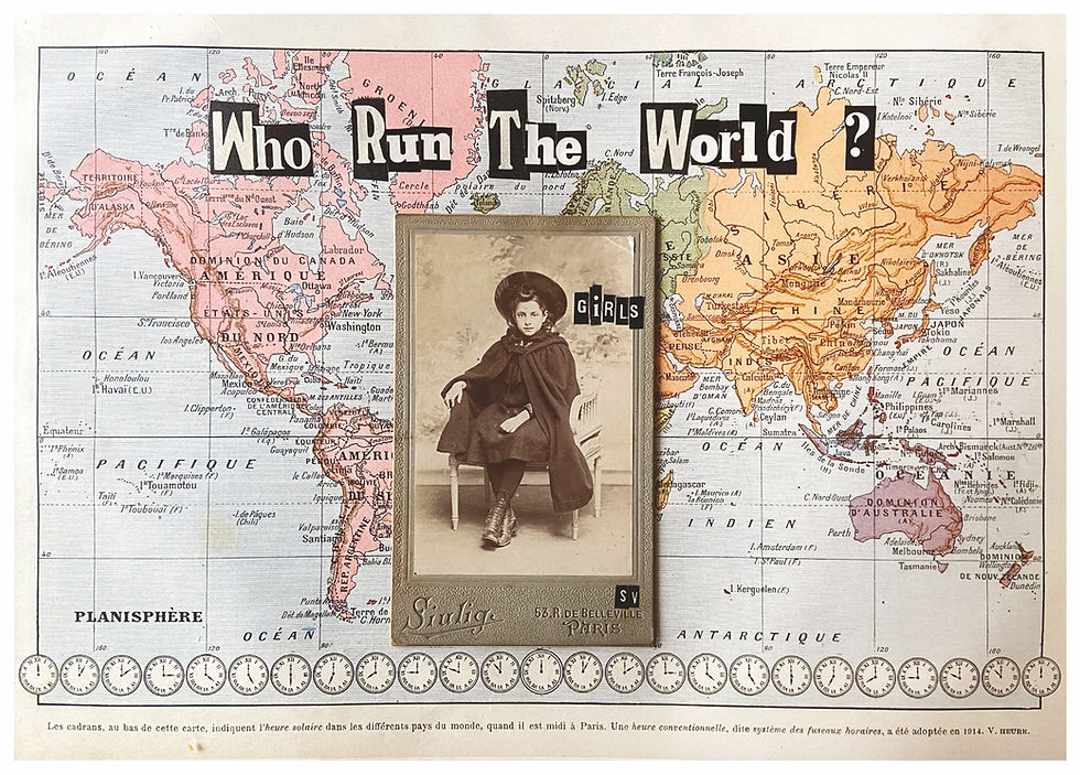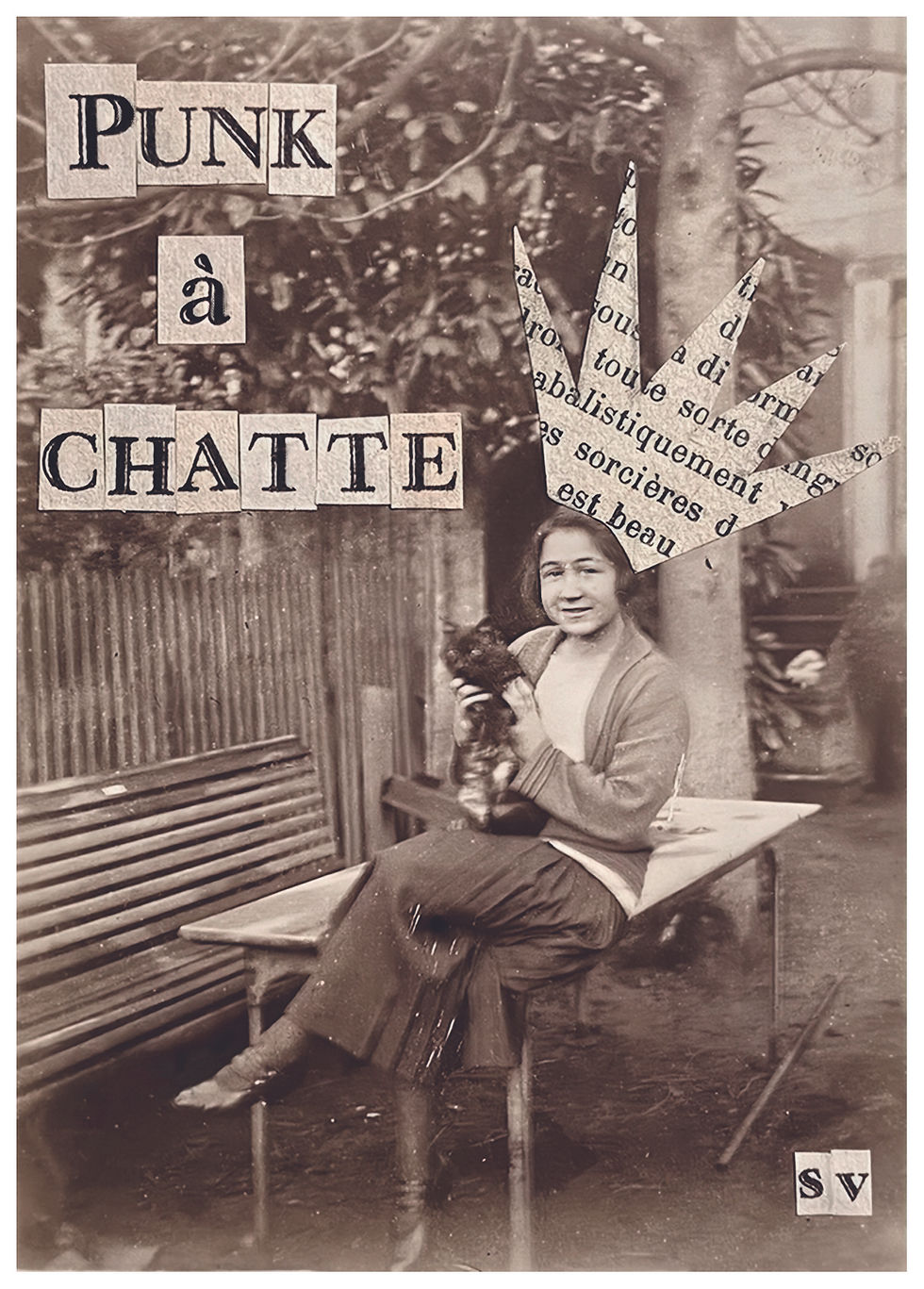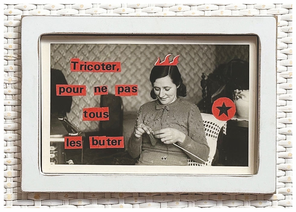 Tous mes collages sont faits à la main, sur des photos tirages originaux d'époque chinés, avec des lettres découpées minutieusement à la main. J'utilise en revanche photoshop pour retoucher ces collages pour tout ce qui est imprimé (cartes postales, magnets, badges...), pour parfois recadrer un collage, en ajuster les couleurs, mais aussi quelques fois effacer des choses (tâches, trou... ) qui donnent leur charme à une oeuvre originale, mais sont trop distrayantes sur un badge par exemple.